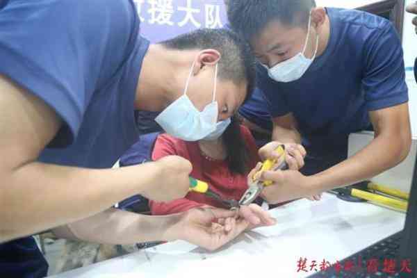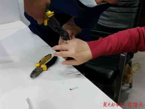 楚天都市报5月27日讯(记者黄忠 视频剪辑赵鹏 通讯员吴仪)“请问是消防队吗?我母亲的手指被戒指卡住了,你们能帮忙取出来吗?”5月26日晚9时25分,钟祥市襄汉路消防救援站接到这样一个群众求助。由于求助人母亲疼痛难忍,经接警员告知消防站地址后,一家人便自行驱车前来求助。早已在门口等候多时的消防员利用工具5分钟巧拆戒指。