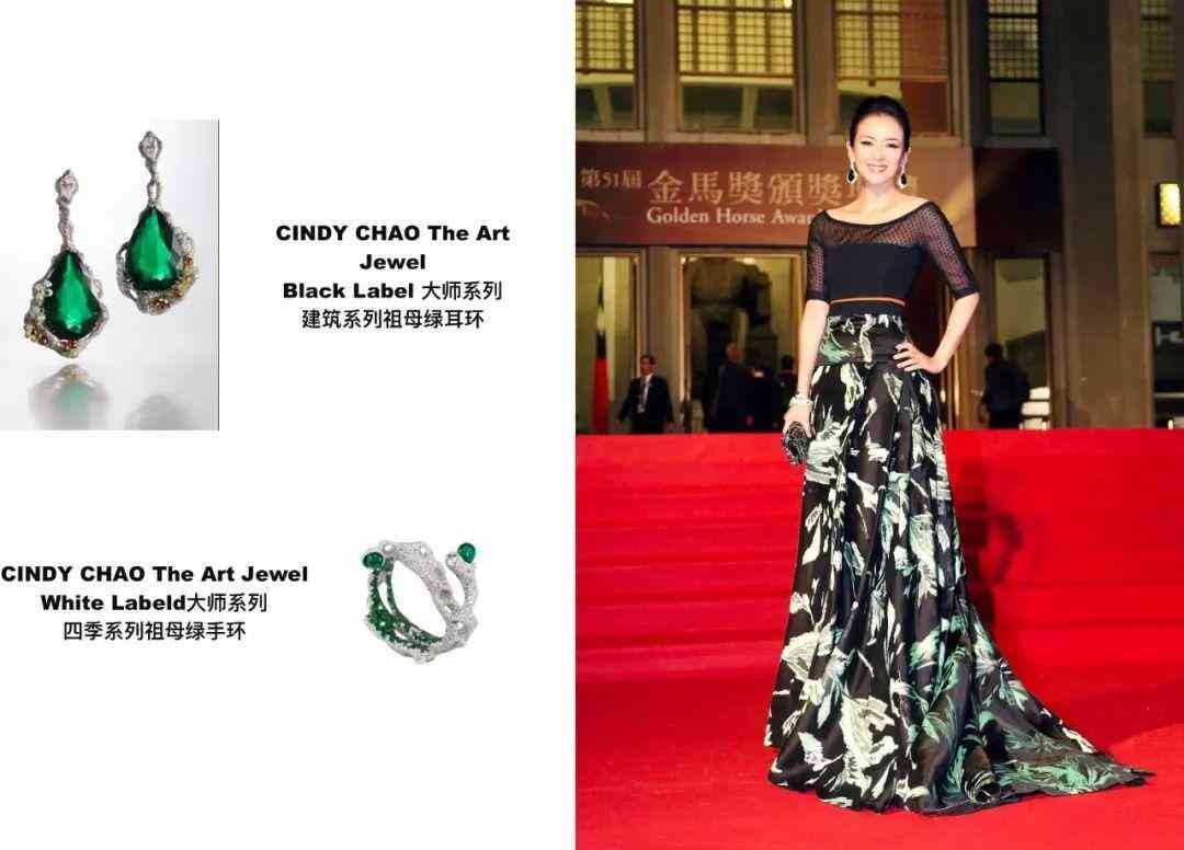 凭借《一代宗师》荣膺金马影后时,章子怡就佩戴着CINDY CHAO The Art Jewel White Label 缎带系列蓝宝石缎带耳环登上了《时尚芭莎》封面。