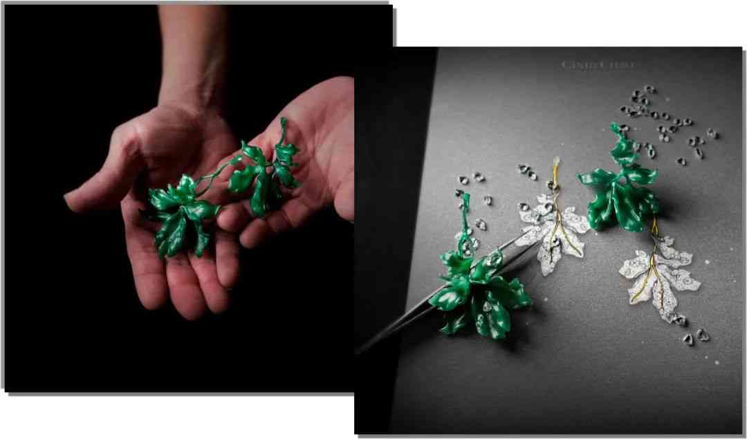 所以CINDY CHAO The Art Jewel还不忘初心地沿袭着18世纪就有的手工蜡雕技术,要先做出1:1的模型后,再开模镶嵌,每一件都是独一无二的。