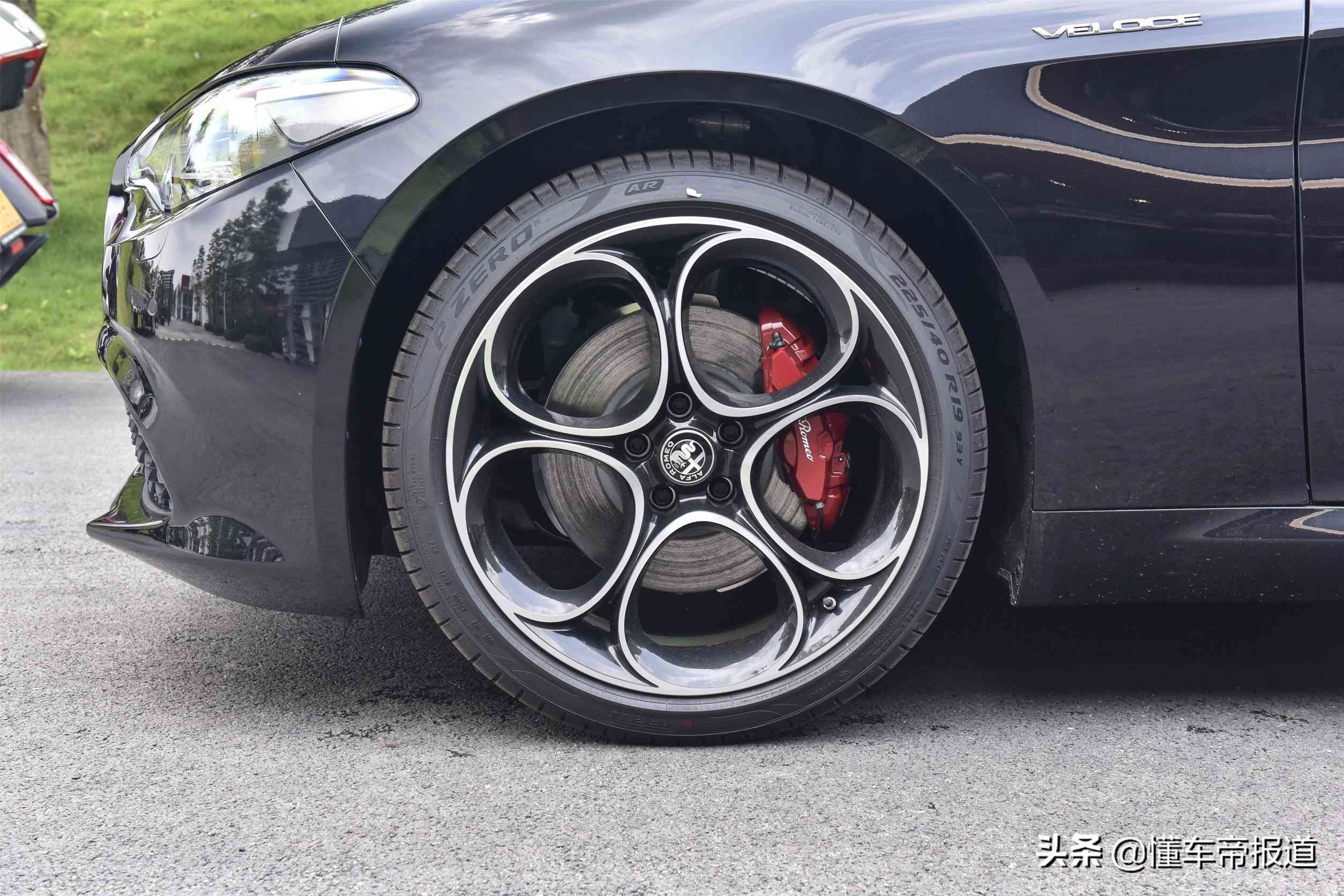 基于本次到店车型来看,这款Giulia Veloce赛道版采用一款火山黑金属漆,同时,包括赭石贵金、烈焰激红和米萨诺蓝3款车漆在内,也是Giulia Veloce赛道版的专属外观配色。同时,有别于Giulia Ti驾控版的外观设计还包括19英寸花瓣形轮辋和红色刹车卡钳,以及位于前翼子板位置的Veloce标识。