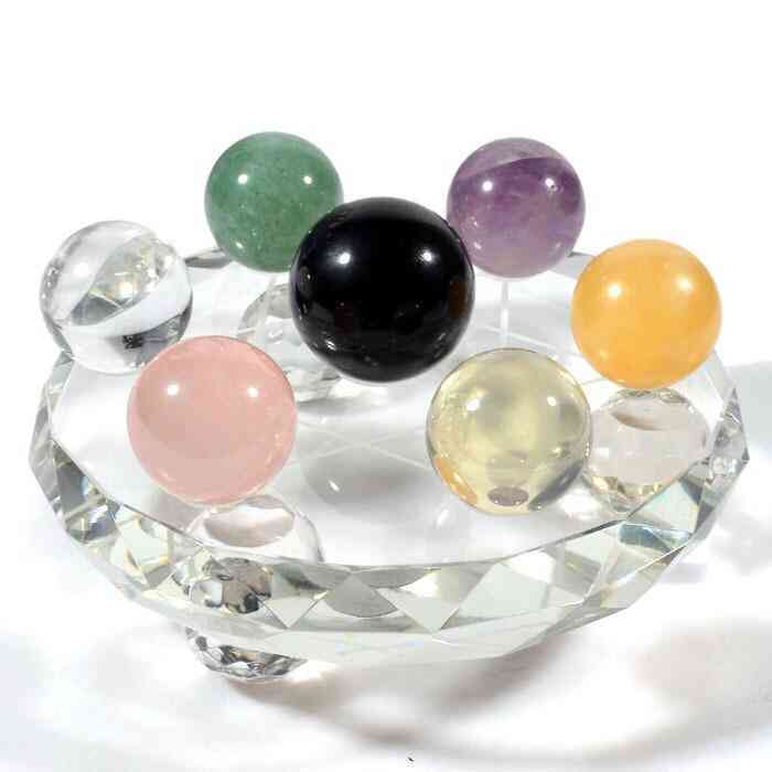 七星阵对角开始安置颗晶球,由黄水晶球、白水晶球、黑玉髓球、红玉髓球、粉晶球、萤石球依顺位顺时钟方向排列;正中的大主石球(萤石球)为最后定位之晶球。
