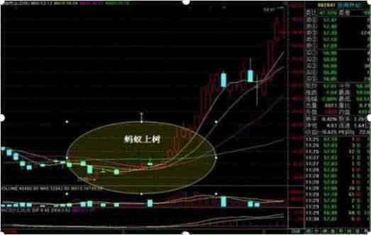 指股价低位企稳,依托5日均线,以连续小阳线缓步攀升,其成交量保持在相对温和的状态,会放出间歇量。特别是在盘势回调时仍可保持同一节奏,就像蚂蚁雄兵在不断前进一样。但这时候不是最佳的买点,而是在出现回调,下破5日线,在10日线附近获得支撑并收下影阴线的时候,考虑介入。因为随后两天往往会以阳线向上攻击,创出新高。