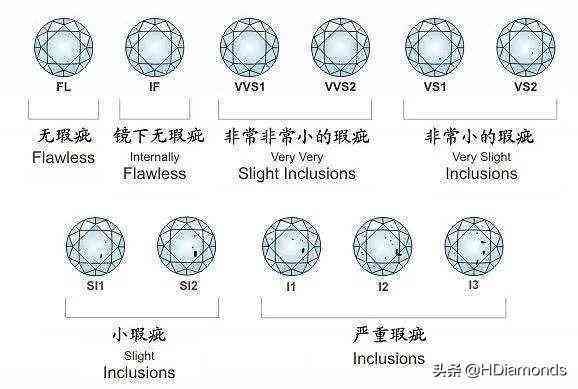 还是用钻石来举例,在GIA钻石净度标准中,从FL(无瑕级)到I(内含级)有11个等级。
