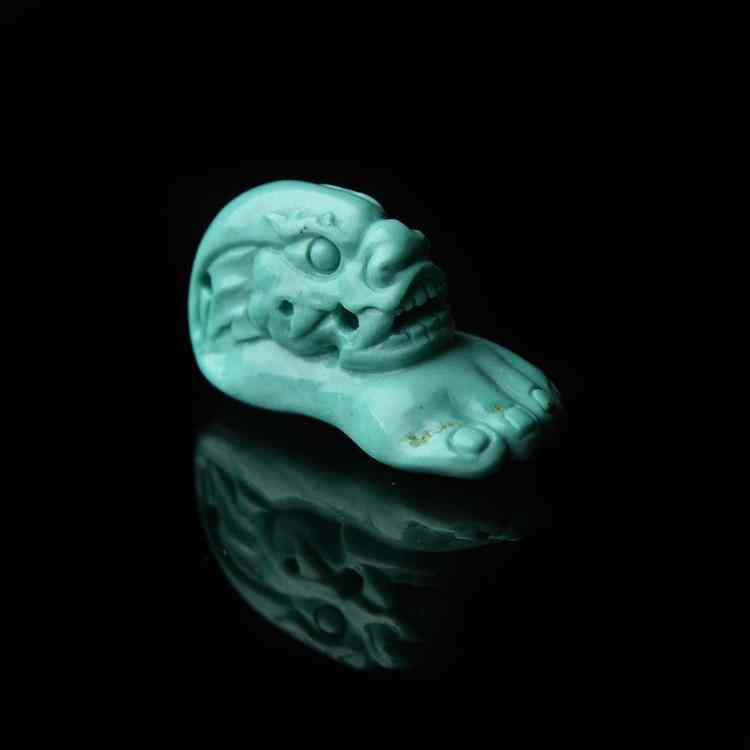 经常玩绿松石的朋友们应该都知道,绿松石的雕件,按照用途主要分为三种:挂件,手玩件,摆件。挂件大致在40克以下,根据其形状和大小,选择挂在胸前还是挂在腰间;手玩件大致在40-120克之间;120克以上的则通常用来摆放。松石开始是玩颜色,中期玩料子,后期玩雕工,绿松石的雕刻件种类多、形状各异、题材多变。那么,对于这些雕件的好坏是如何判断?