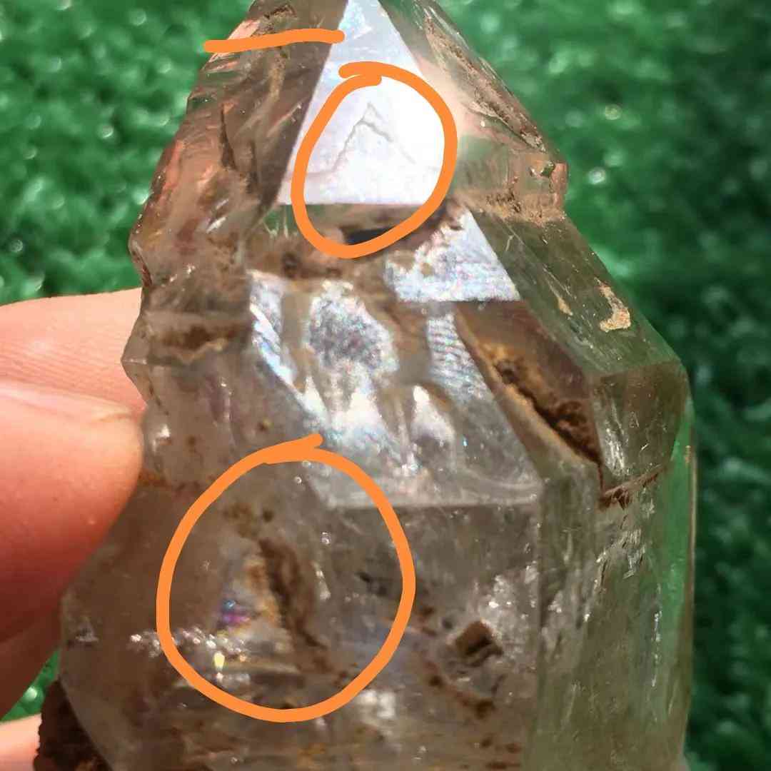 我在这里再补充几点:水晶原石的表面有三角形印记,小波浪印记,指纹圈印记,一层一层的三角形或圆形孔洞。