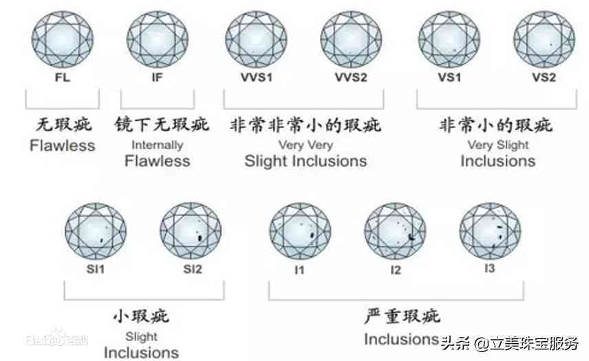 莫桑钻的净度和钻石的净度等级一样有11个等级,FL,IF,VVS1,VVS2,VS 1,VS2,SI1,SI2,I1,I2,I3。净度等级越高,瑕疵越少,价格也就越贵。FL基本上是无瑕疵,I1、I2、I3是肉眼可以看到的瑕疵等级。