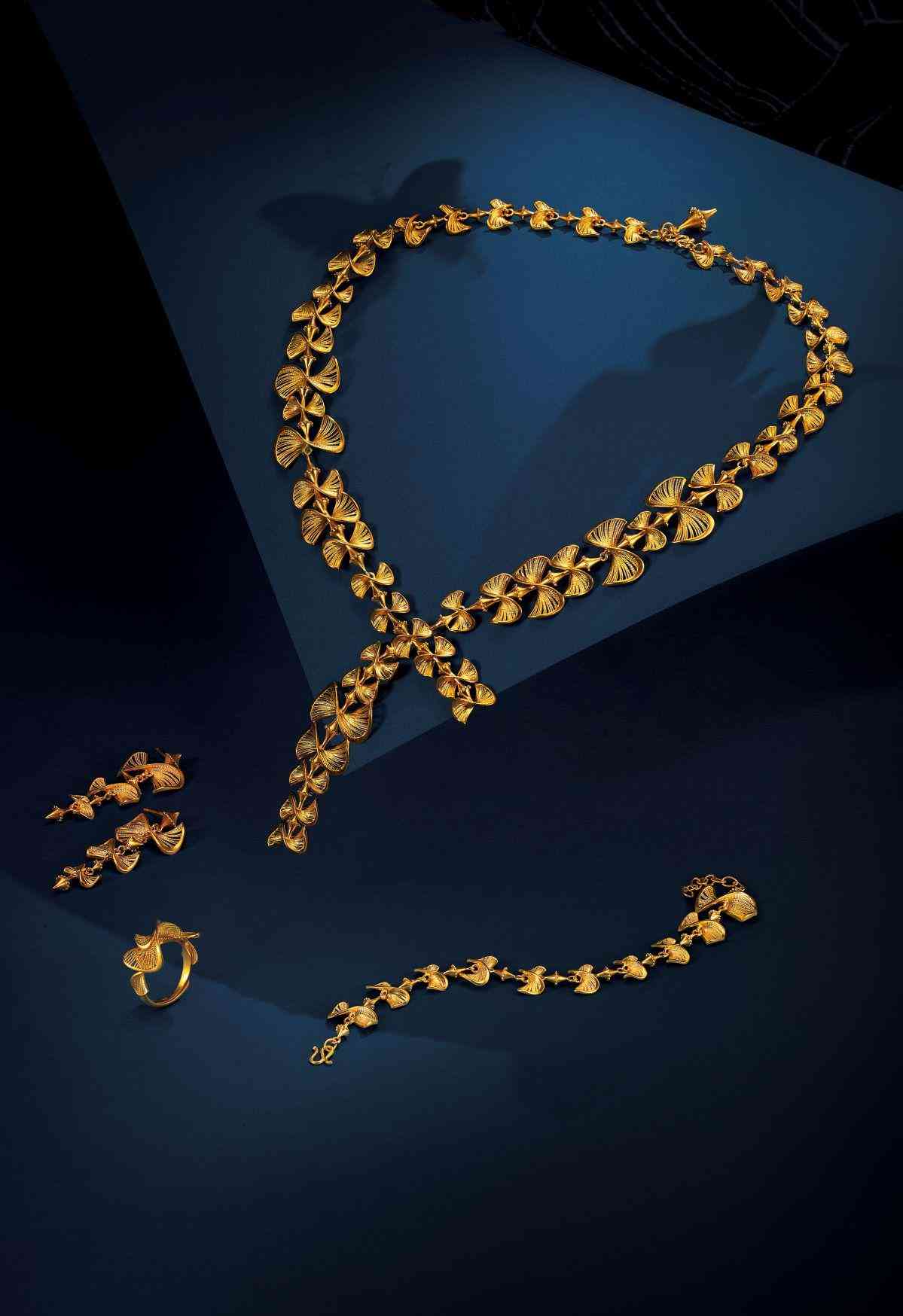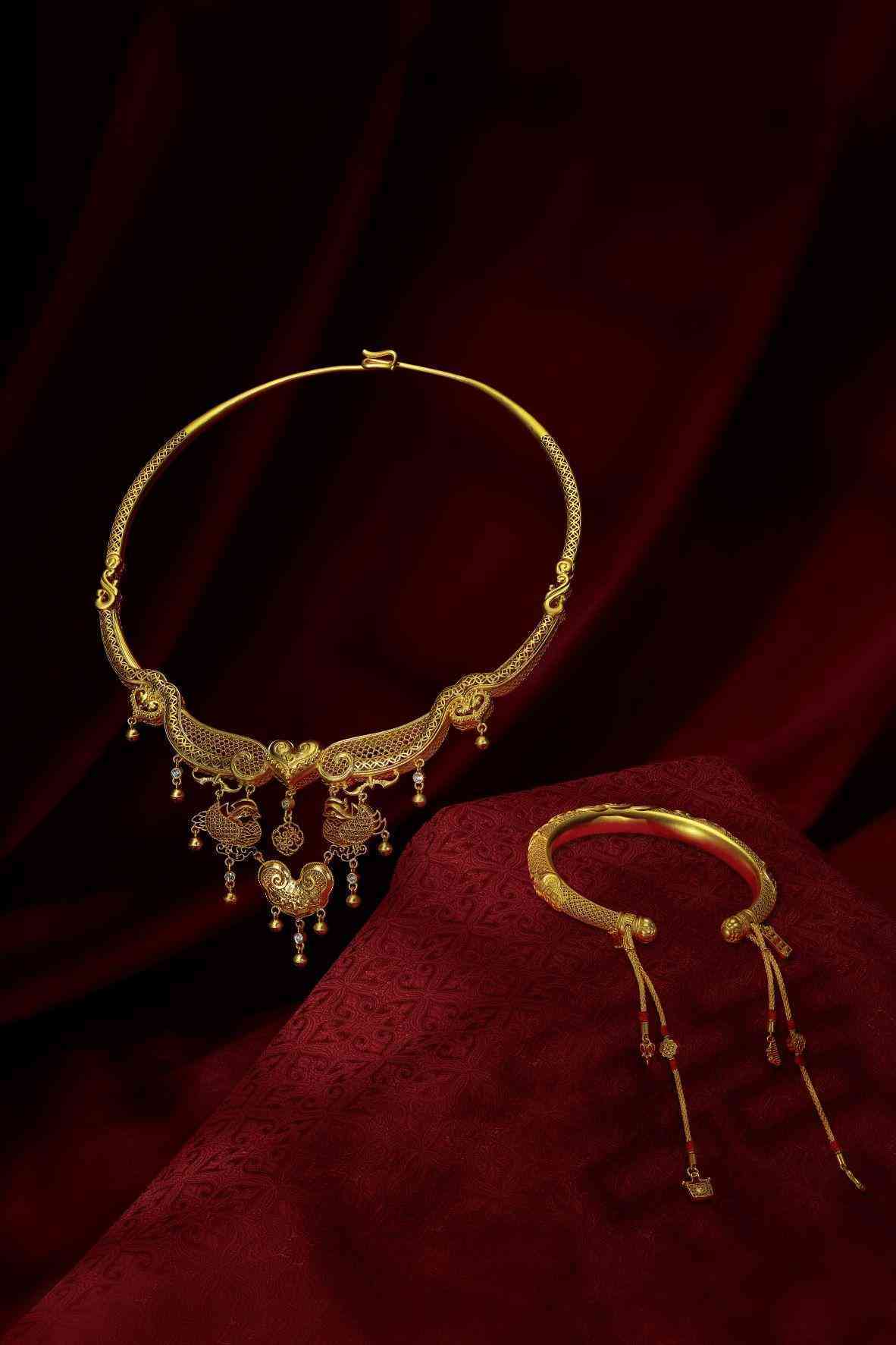 这几年来几乎每个老黄金品牌都推出了古法金工艺制作的婚嫁系列作品。2021年,老凤祥推出了“凤祥囍事 2”婚庆系列足金套件,该系列同样同样着眼于古法黄金铸造工艺(在老凤祥被称为“藏宝金”)。