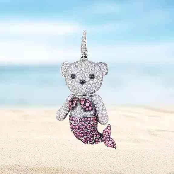 18K白金镶钻石及粉红蓝宝石大号美人鱼吊坠