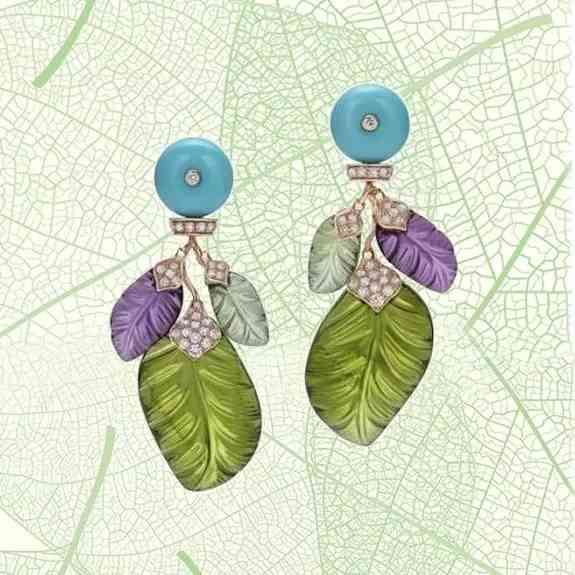 绿色、紫色和小白钻、黄金的搭配显出夏天的绚烂多彩,像极了夏日的东南亚街头女孩爱的那种耳环。