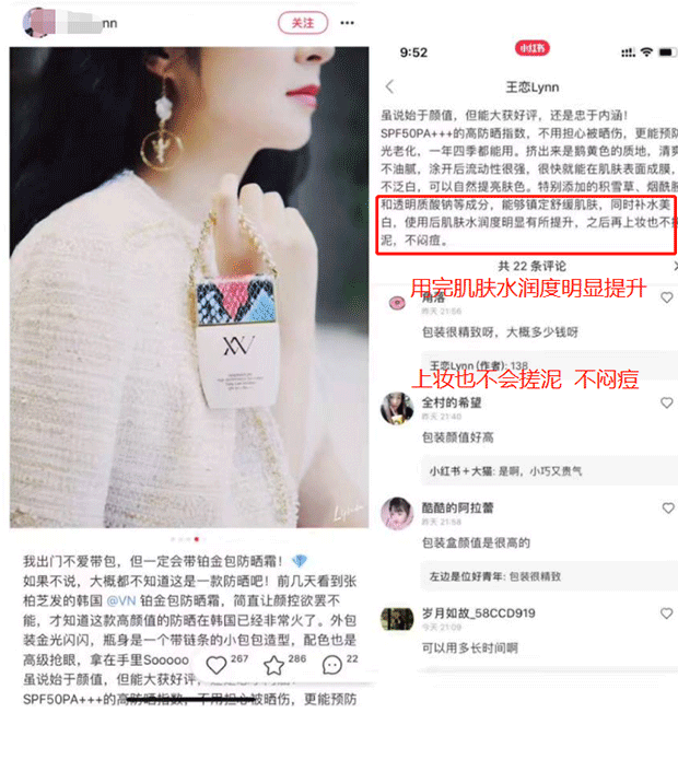 再看看小红书上小姐姐们发的po文 ,都说它“轻薄水润”“不油腻”,“上脸不搓泥”,“美白防晒两不误”,“皮肤白到发光”。