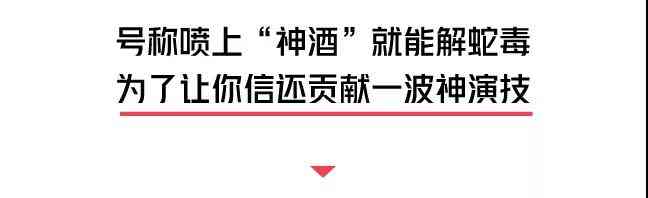 一人假装抓蛇不慎被咬,正当痛苦万分时,突然出现手握“神酒”的救命恩人,拿着“神酒”随手一喷,不消片刻被咬的人就生龙活虎。