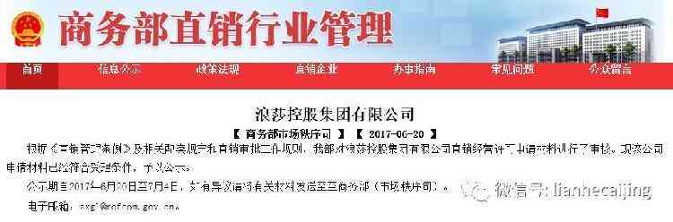 2017年6月20日,商务部网站挂出浪莎控股直销经营许可申请的公示,浪莎要开拓直销业务得到证实。公示期自2017年6月20日至7月4日。