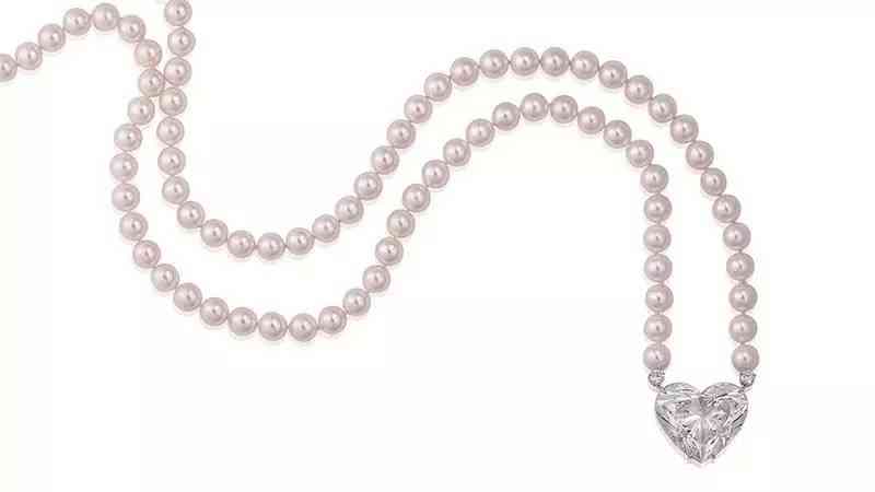 心形钻石珍珠项链镶嵌的D色钻石重达92.15克拉