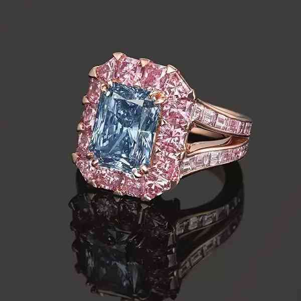Moussaieff设计的一枚戒指,由粉钻与蓝色钻石镶嵌组成