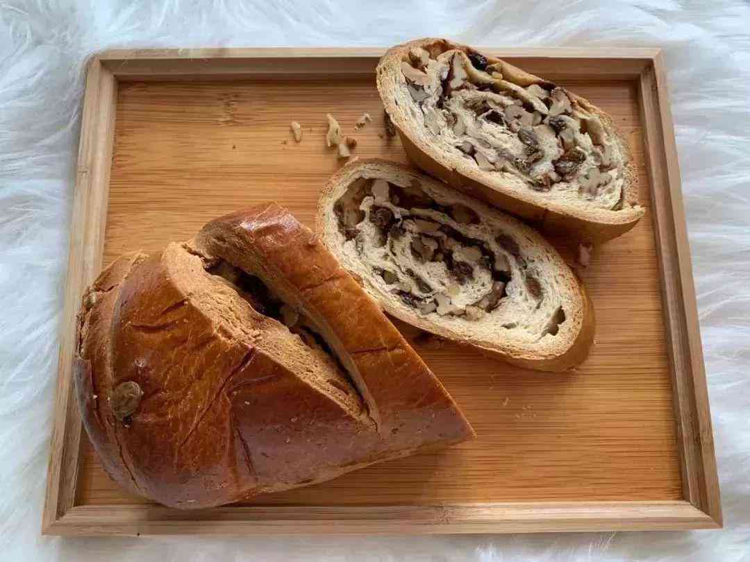 泰和这款列巴属于硬质面包,制作过程中不加一滴水,完全由牛奶和黄油来和面,切开里面是一圈圈的核桃仁和葡萄干,奶香味十足,口感特别扎实。