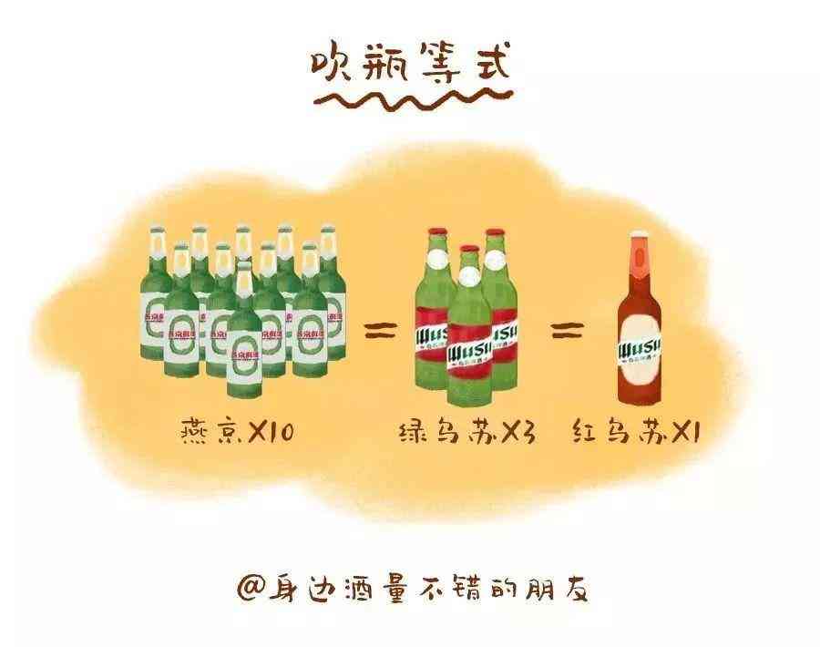 据身边酒量不错的朋友亲测,吹瓶等式基本是这样的:10 瓶燕京=3 瓶绿乌苏=1 瓶红乌苏,可见非常了得。