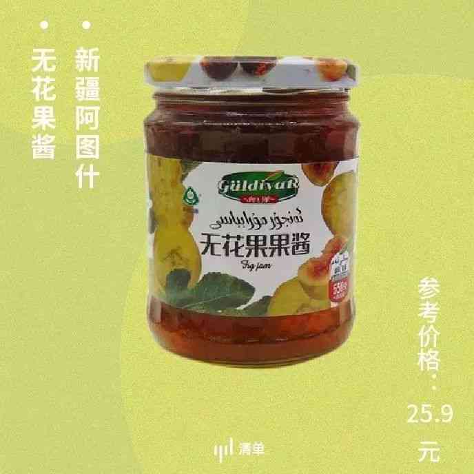 这个果酱的配料表只有无花果和白砂糖,没有其他添加剂,还原了新疆无花果的真实味道。用它来抹面包、做点心或者泡水喝都很不错。