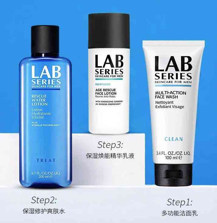 LAB是雅诗兰黛旗下的男士高端品牌,这套包含:多功能洁面乳100ml+蓝宝瓶爽肤水200ml+保湿焕能精华乳液50ml。