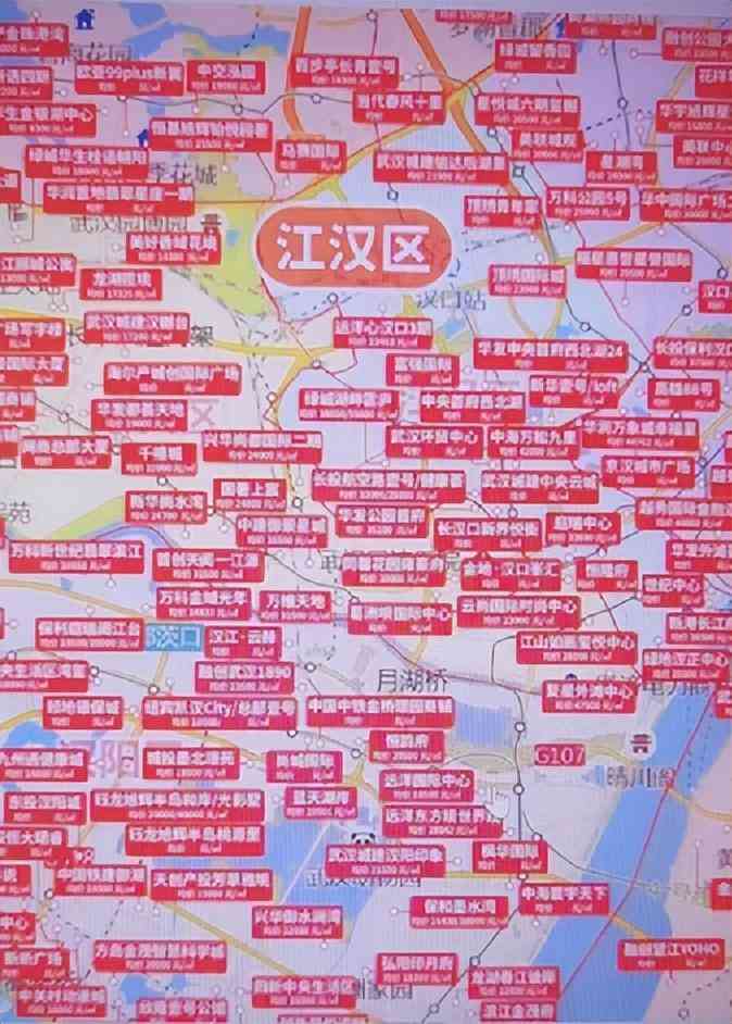 上图是我在武汉调研的时候截的一张楼市地图,如果屏幕前的你是合肥本地人估计就震惊了,合肥什么时候看房在一个区域看过如此密密麻麻的楼盘?