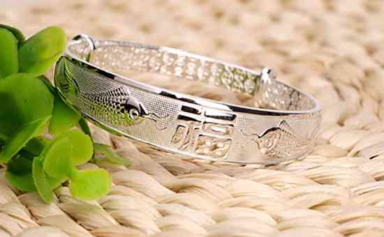 足银是含银量千分数不小于990的称足银。足银一般加工成手镯,吊坠,长命锁碗、筷、杯子、壶等,足银饰通常有几种标志,一种是S99,一种为S990,S是英文单词silver(银)的首字母,代表银。含量有999,990和925之分。