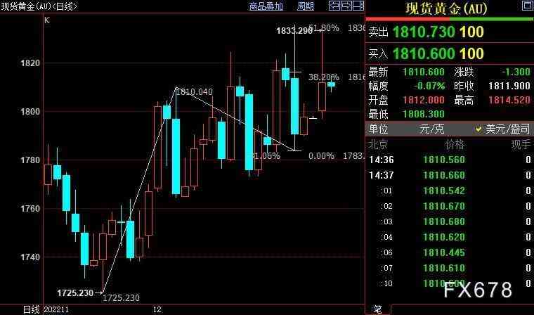 现货黄金上看1836美元