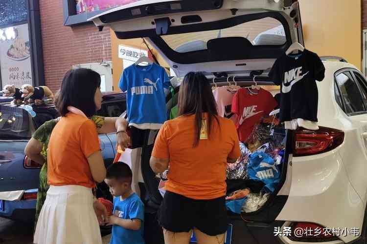 这位车主选择的是摆摊卖品牌童装,彪马、耐克这些知名品牌的衣服,摆在汽车尾箱来摆摊出售,跟专卖店里比起来好像确实感觉不一样。平时大家一般说起来“地摊货”可能都是那种廉价的衣服,可这种名牌地摊货应该价格也不低。