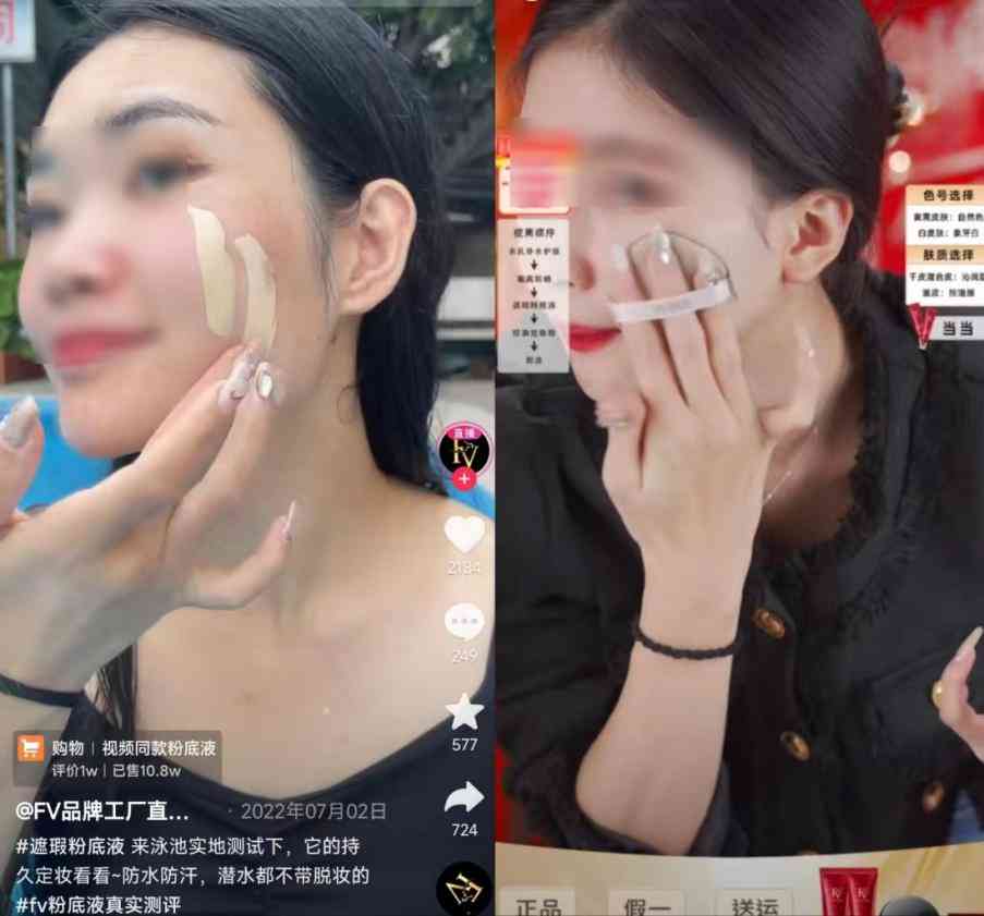 该粉底液主打遮瑕、防水,品牌直播间女主播卸妆上妆,展示粉底的功效,将产品用法和原生态效果展示发挥到极致,快速获取用户信任引爆产品销量。