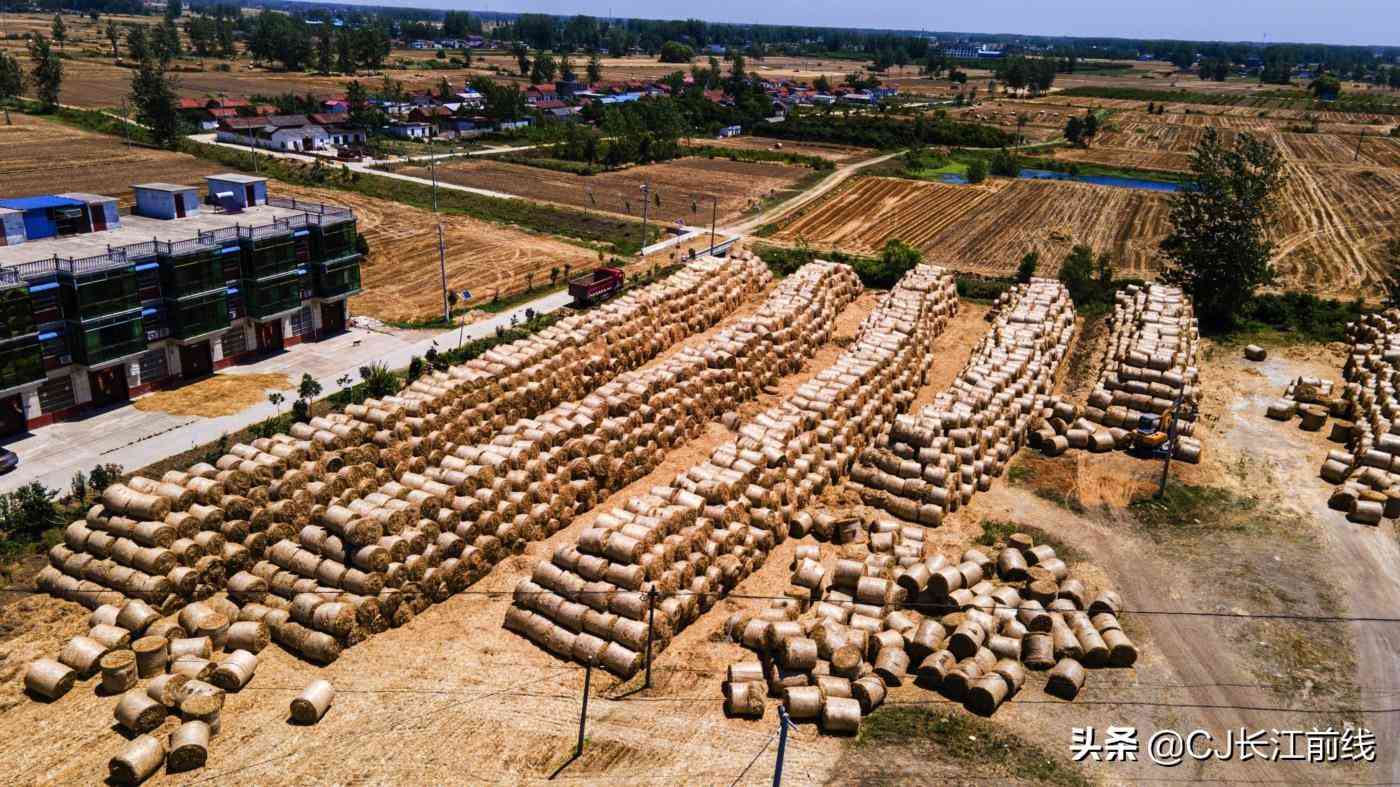 图为该县三空桥、防胡、张里等乡镇,堆积如山的秸秆垛场的壮观景像。