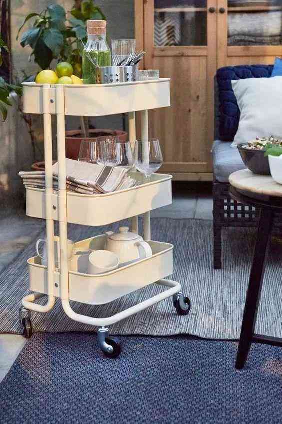 移动小推车既可以当杂物收纳,也能够当做小茶几。客人来的时候,还可当做小餐车。