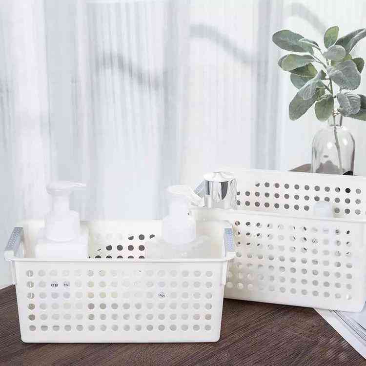 对于化妆瓶这些小物件可以使用收纳篮来隔离收纳,更能很好划分空间。