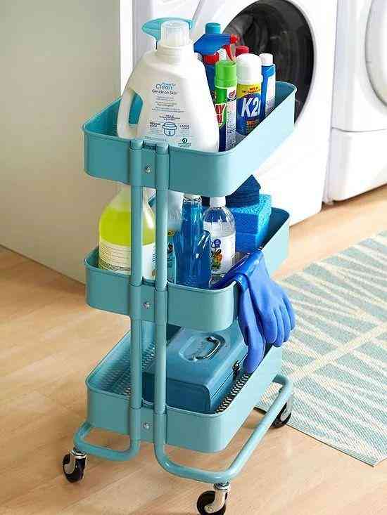 阳台积水严重,加上日常使用的刷子和洗护用品,很容易滋生霉菌。把常使用的洗护东西摆在移动小推车里,不用费力搬动沉重的洗护用品,就算阳台上面晒衣服滴水,也能移动小推车到别处去。再也不怕洗护用品积水长霉菌啦!