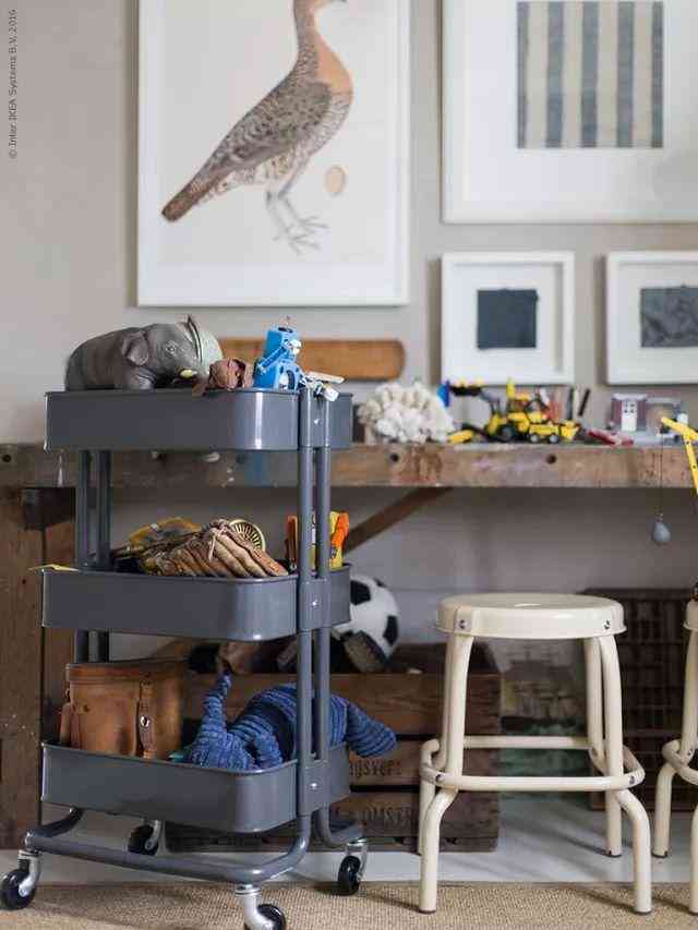新手爸妈们最头痛的是孩子物品的收纳,无论怎么收纳每次取用都会变成一团乱。用小推车分类收纳,玩具区、手工区、绘画区、尿片区,让物品一目了然。小推车简单粗暴的分层收纳方式,还能帮助孩子养成物品分类的习惯。