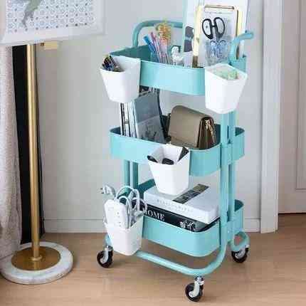精致女孩的当代修养就是买买买,爆满的梳妆台已经没有新买口红的容身之处,一个移动收纳的小推车就可以扩容你的化妆间。