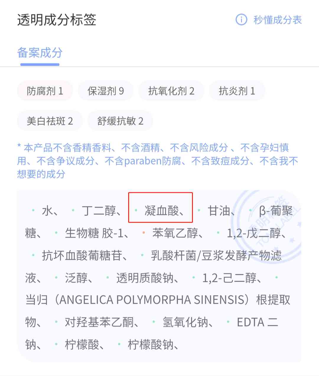 化妆品中含有凝血酸(化妆品中含有凝血酸的成分)