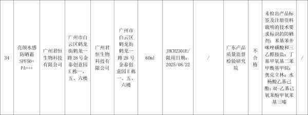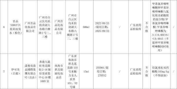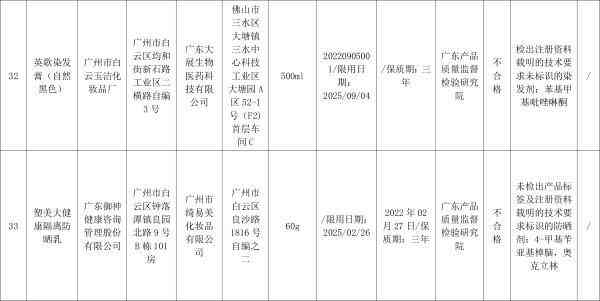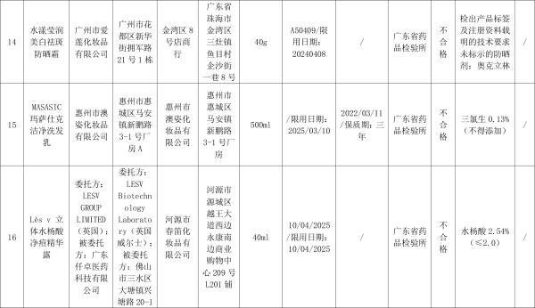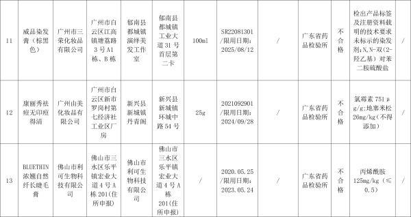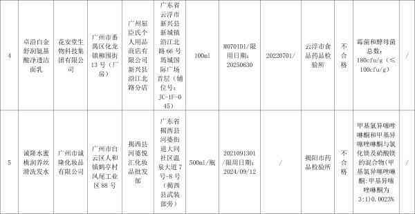 对抽检不合格化妆品,广东省药品监督管理局已要求相关企业和单位采取暂停销售、召回等风险。