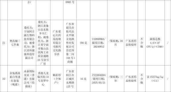 其中,奥齿健三七牙膏、卓沿白金舒润氨基酸净透洁面等多款产品涉及菌落总数、霉菌和酵母菌总数不合格。具体来说,宁波阿吉露生物科技有限公司委托浙江清科健康科技有限公司生产的奥齿健三七牙膏被检出菌落总数不合格;广州市富宝日用化工有限公司生产的Deleventh玻色因肌肽多效面膜、花安堂生物科技集团有限公司生产的卓沿白金舒润氨基酸净透洁面涉及霉菌和酵母菌总数超标。