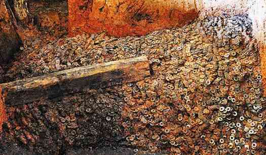 7、南昌汉墓两吨多古钱打包清运 造型保持原始状态
