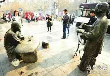 2、街头老残听曲雕塑遭损毁:倒茶伙计不见了