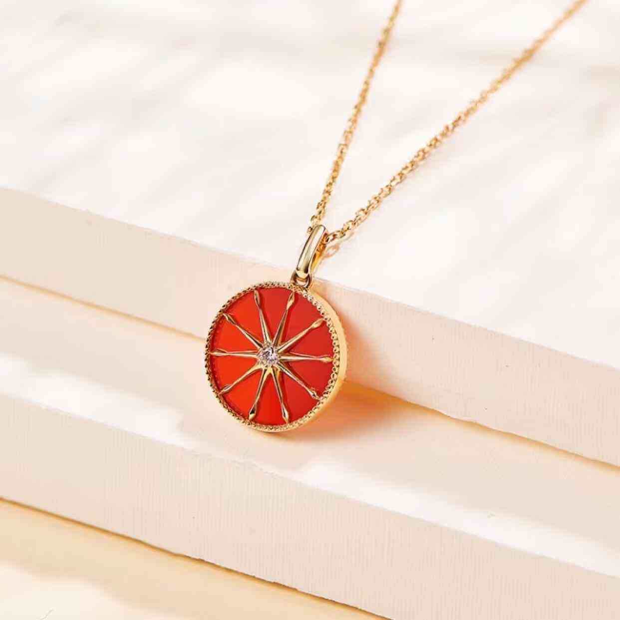 【范琦十芒星】推荐指数18K金材质丨红玛瑙色泽就自带熟女感,配着东方女孩的肤色,显白又大气,十芒星覆盖在红玛瑙上炫丽轻奢,不同方向的指引更是给人带来希望和信念感