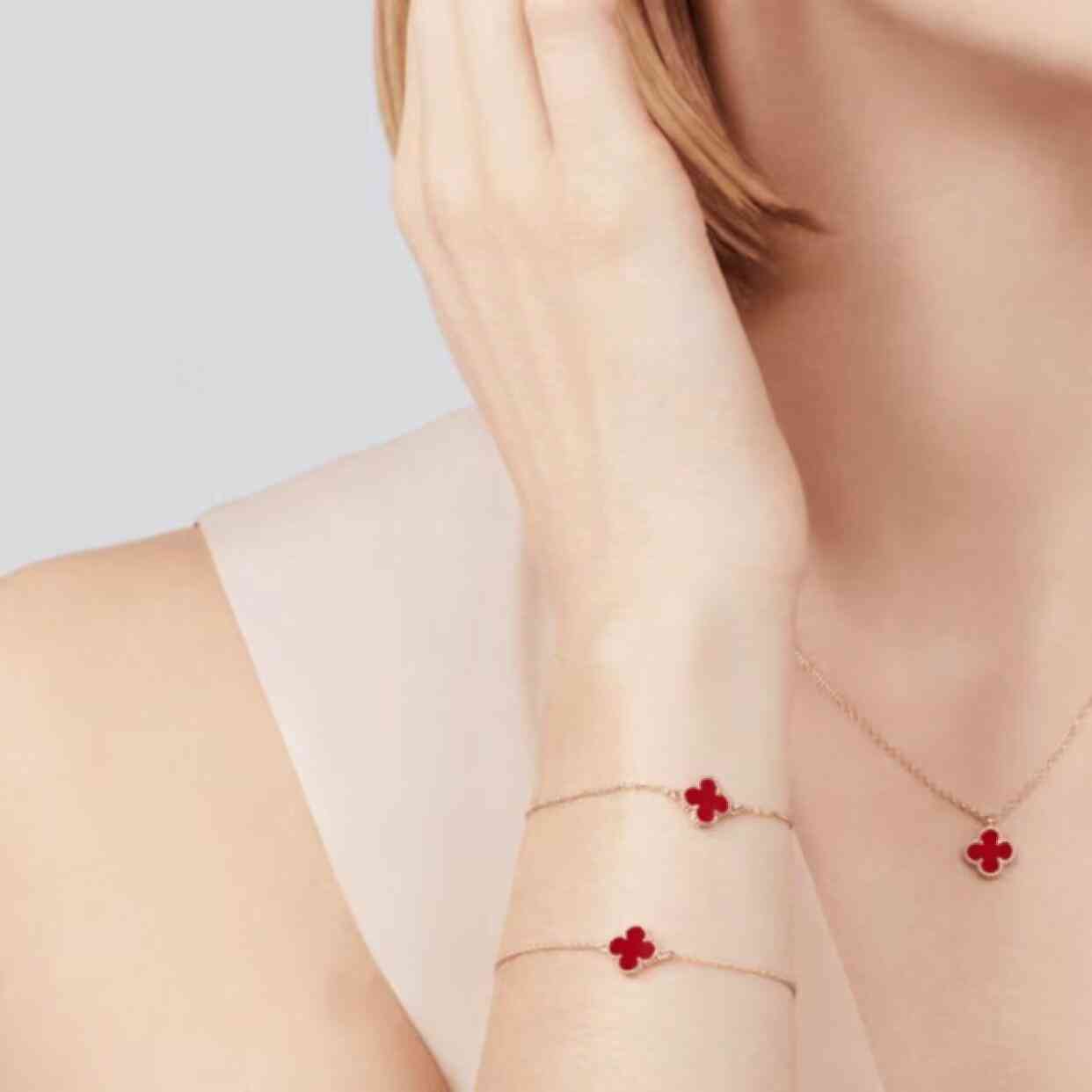 【梵克雅宝】推荐指数梵克雅宝的四叶草是经典中的经典了,四篇小小的叶子簇拥在一起,充满着信念和力量感,高级的红色显白又不庸俗,金色的露珠包边复古甜美,日常也很百搭