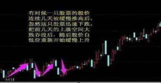 经过前面两部之后,真正的庄股仍然会在行情启动前,进行再一次的洗盘,股价在经历也一段时间的拉升之后,接下来快速下跌回落,两天的阴线可能直接把一周的阳线所吃掉,之后股价再慢慢回升,再快速回落,这是主力打压吸筹的重要手法,建议投资者,如果股价不跌破个股的成本线,完全可以继续持股待涨。