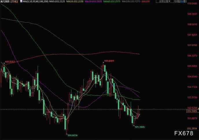 美元指数尾盘上涨0.53%,报102.55,此前曾达到102.81,为4月3日以来最高。欧元下跌0.36%至1.0859美元,此前曾跌至1.08315美元,为4月3日以来最低。