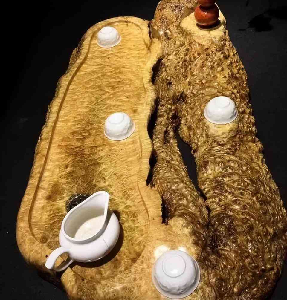 黄金樟木又称牛樟木,是生长于东南亚热带雨林中的一种树木。硬度较高,不易磨损。同时,它还含有极重的油质和铁质,这种油质和铁质使之保持不变型、防酸碱,而且特别防潮耐腐。以上特性决定了黄金樟木比较适制成茶盘,又因其形状的灵动多姿而受到广大茶友的青睐。