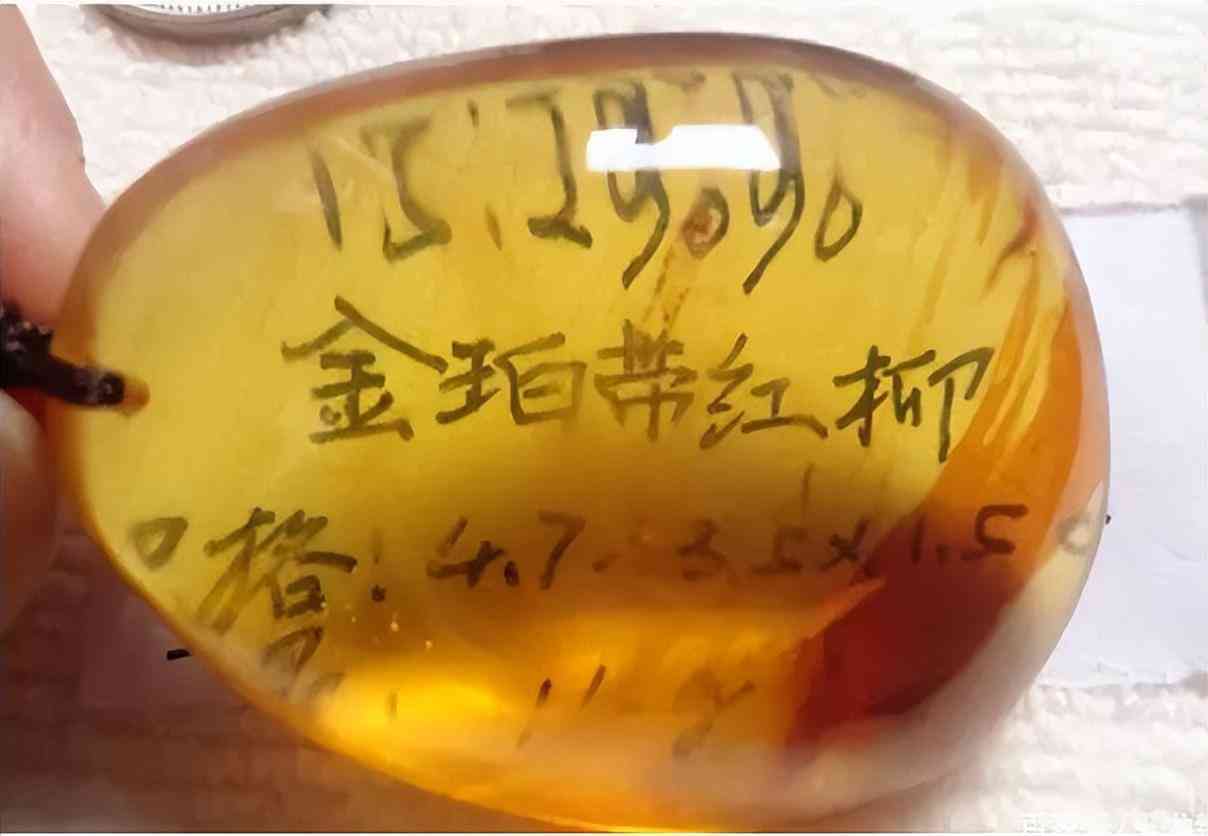 金珀的珀体颜色为金黄色,黑底下泛蓝色机油光少数泛蓝绿色机油光;个别琥珀在边缘微泛红色;荧光白蓝色。