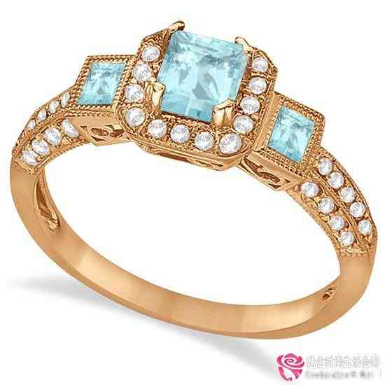 玫瑰金绿松石海蓝宝石钻石戒指Allurez