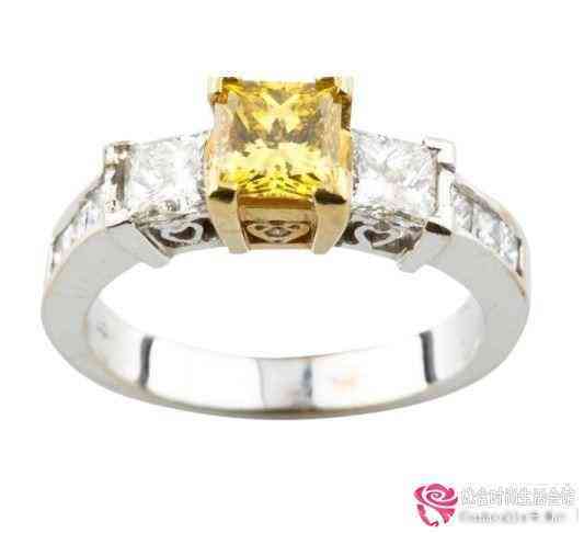 黄色钻石适合白金。这个订婚戒指是一个适合金色的手链和白皙的皮肤女孩佩戴。