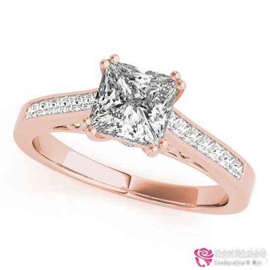 玫瑰金镶嵌巨大对角钻石订婚戒指