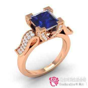 玫瑰金蓝色蓝宝石订婚戒指