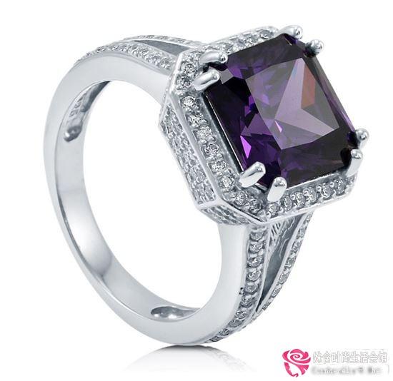 925纯银紫水晶订婚戒指
