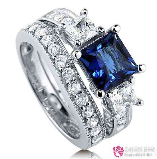 纯银蓝色蓝宝石订婚戒指